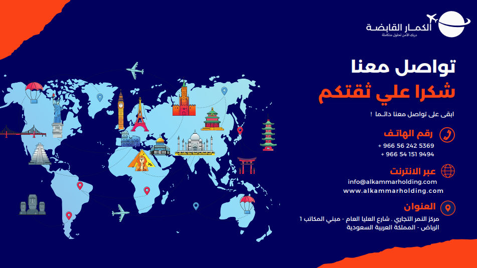 الكمار للخدمات السياحية شركة متخصصة في تقديم حلول سفر متكاملة للعائلات والأفراد والشركات والضيوف القادمين إلى المملكة. تقدم برامج وباقات مرنة تجمع بين التنظيم والاختيار، وتشمل تنظيم رحلات ترفيهية وعلاجية ورحلات عمل، وخدمات الحج والعمرة، إضافة إلى تنسيق حجوزات الطيران والفنادق والتنقلات والجولات داخل الوجهة. تعتمد الشركة على فريق محترف وخبرات في قطاع السياحة والسفر مع الالتزام بالأنظمة والاشتراطات المعمول بها داخل المملكة.