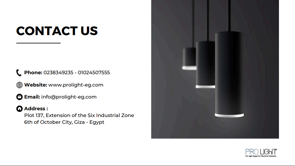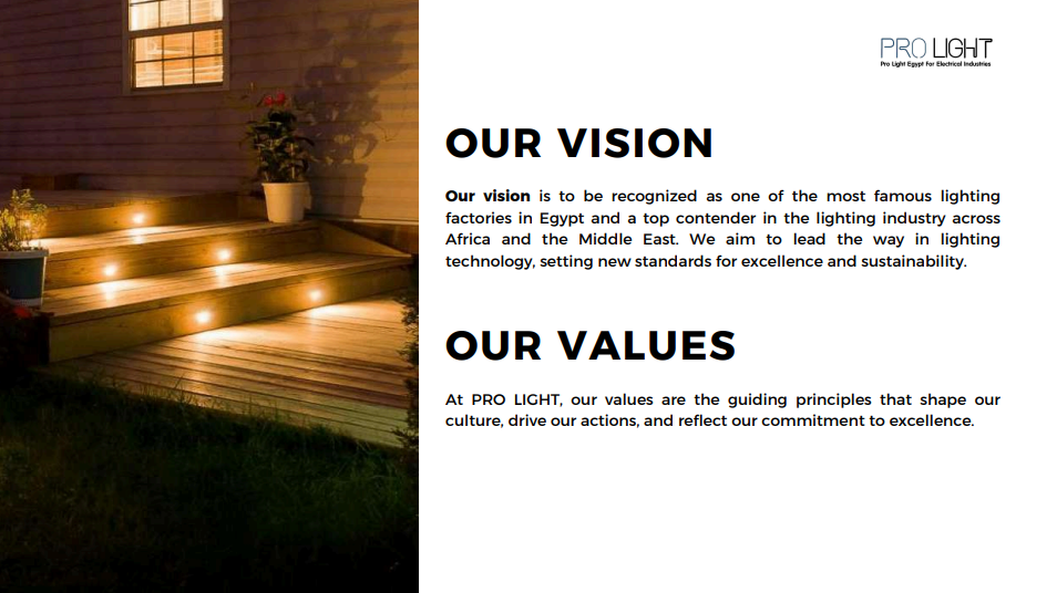 برو لايت شركة/مصنع إضاءة تأسس عام 2017 ومقره مصر، يعمل على تقديم حلول إضاءة حديثة تعتمد على التكنولوجيا، من خلال تصميم وتصنيع وتوزيع مجموعة واسعة من منتجات الإضاءة للاستخدامات الداخلية والخارجية، لتلبية احتياجات المشاريع (Project-Based) وشبكات التوزيع.