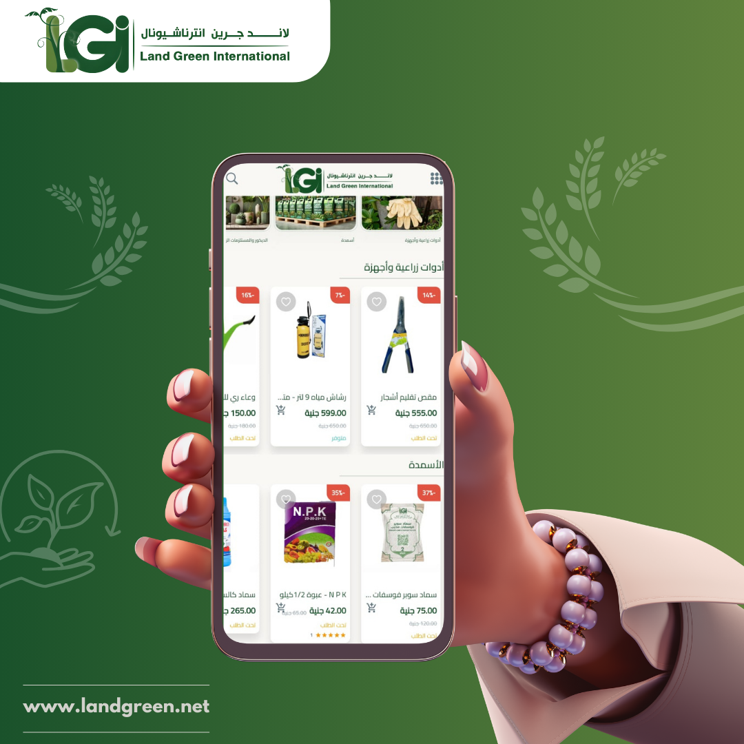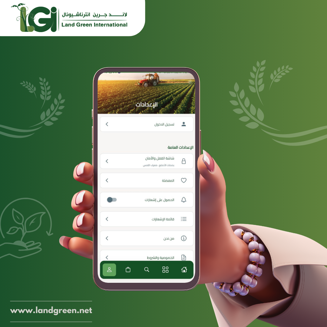 تطبيق Land Green منصة تجمع احتياجات الزراعة في مكان واحد عبر عرض منتجات زراعية متنوعة تشمل البذور وأنظمة الري والأسمدة والمبيدات والمستلزمات الزراعية، بهدف دعم المستخدم في الوصول لاحتياجاته الزراعية بسهولة. كما يوفّر التطبيق بيانات دعم واضحة مثل الموقع الإلكتروني ووسائل التواصل (هاتف وبريد) لخدمة الاستفسارات.