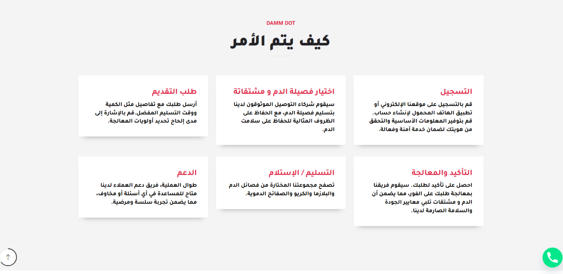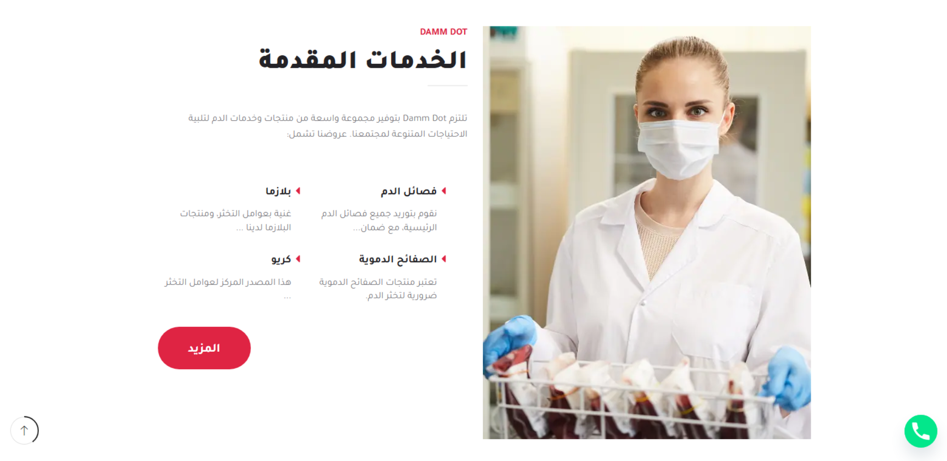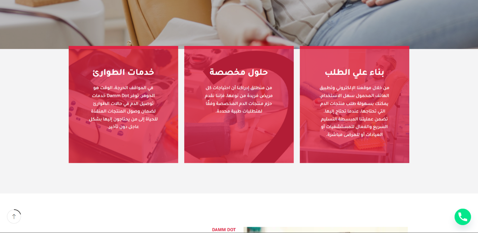 موقع Dam Dot يعرّف بخدمة متخصصة في توفير فصائل الدم والصفائح والبلازما عند الطلب، مع تركيز على خدمات الطوارئ والتوصيل السريع للمرافق الطبية. يوضح الموقع خطوات العمل (تسجيل حساب ثم اختيار المنتج وتوصيله مع الحفاظ على ظروف النقل) ويعرض بيانات التواصل (القاهرة – مصر).
