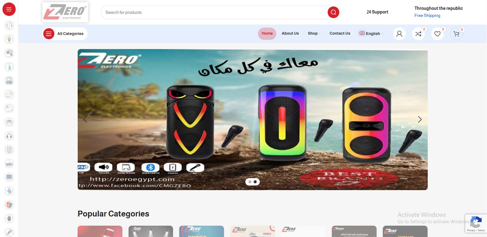 موقع Zero Egypt يعمل كواجهة متجر إلكتروني لبيع الإلكترونيات وملحقاتها داخل مصر، ويقدّم تصنيفات متعددة للمنتجات مثل: كابلات HDMI وكابلات الشبكات، كاميرات، كيبورد وماوس وملحقات اللابتوب، محولات، TV Box وغيرها، مع صفحات للمتجر والتصنيفات وصفحات المنتج. كما يوفّر وظائف تسوّق معتادة مثل تسجيل/إنشاء حساب، قائمة رغبات (Wishlist) والمقارنة (Compare) وسلة المشتريات، بالإضافة لواجهة باللغة العربية إلى جانب الإنجليزية. يضم الموقع صفحات أساسية مثل About Us وShop وContact Us وعنوان داخل القاهرة.