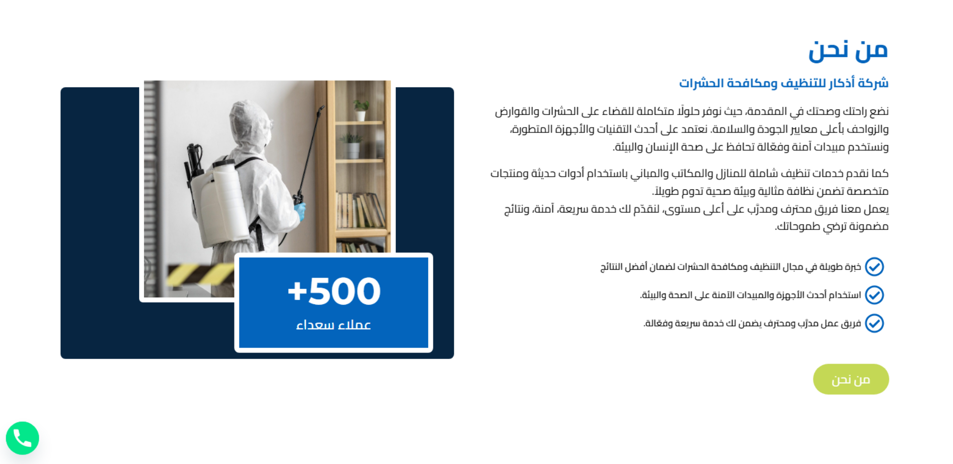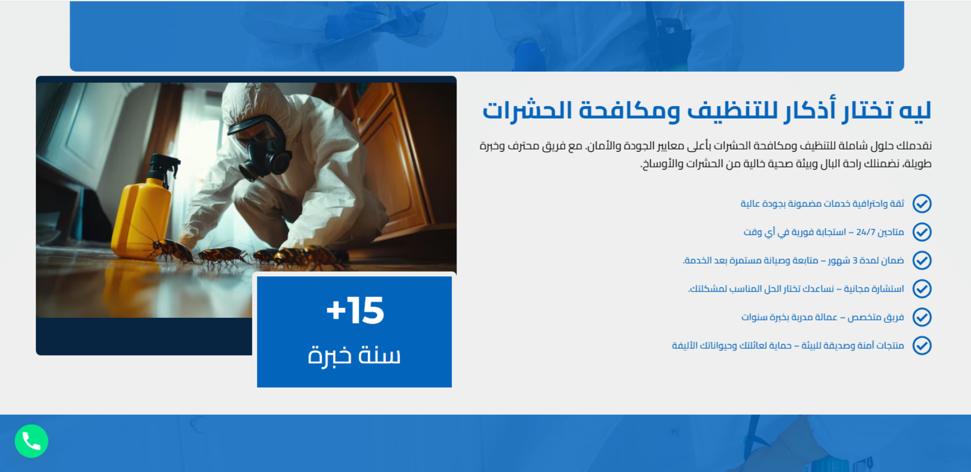 موقع تعريفي لشركة في قطر – الدوحة (شارع السد) متخصصة في التنظيف ومكافحة الحشرات؛ يقدم حلول إبادة آمنة ومعتمدة للصراصير والنمل وبق الفراش والبعوض والقوارض، إلى جانب خدمات تنظيف للفلل والمنازل (المطابخ، السجاد، الكنب، الأرضيات…) مع تواصل مباشر عبر الهاتف والبريد.