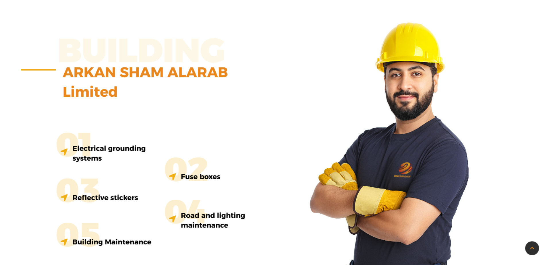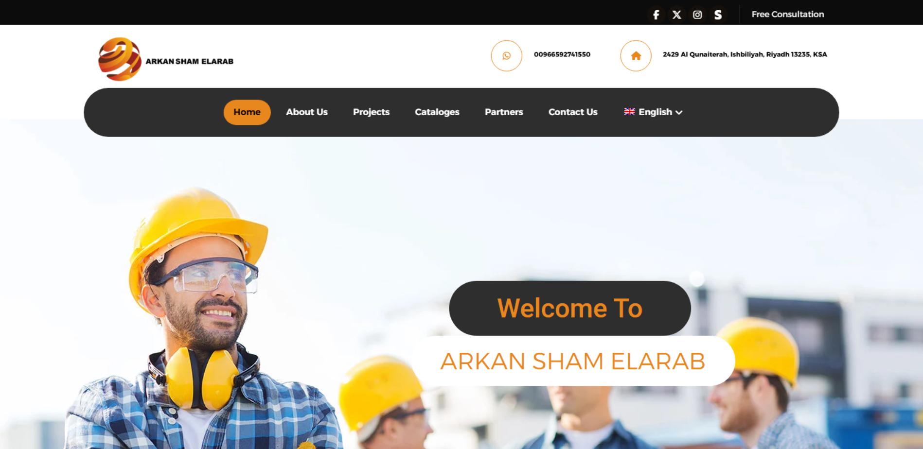 موقع أركان شام العرب يعرض نبذة عن شركة سعودية مسجلة في الرياض تقدم حلول تنفيذ وصيانة للبنية التحتية، تشمل أعمال الطرق والإنارة وصيانة المباني، مع قسم للمشاريع/الأعمال (Projects) وبيانات التواصل الرسمية (هاتف، بريد، عنوان).