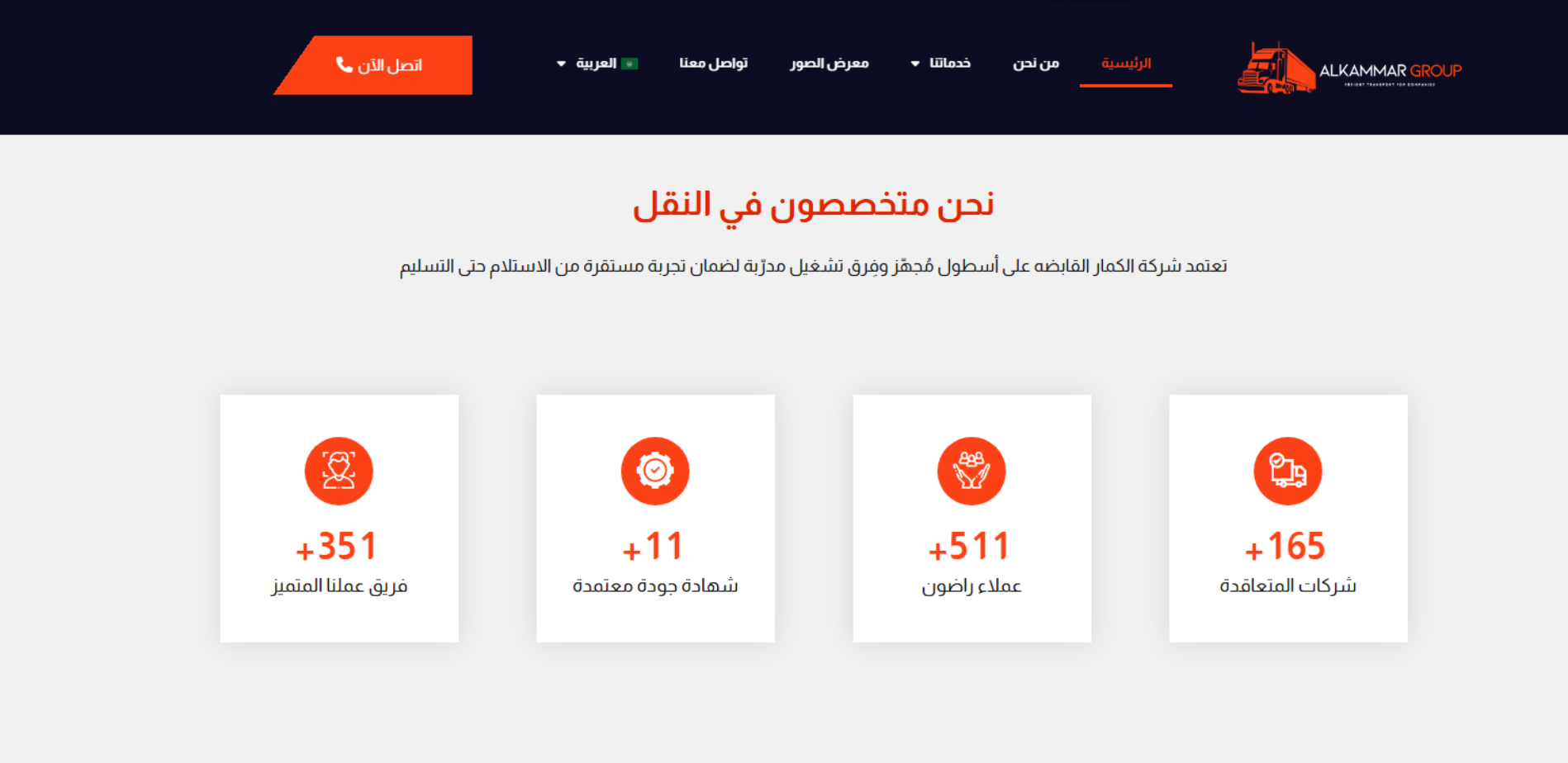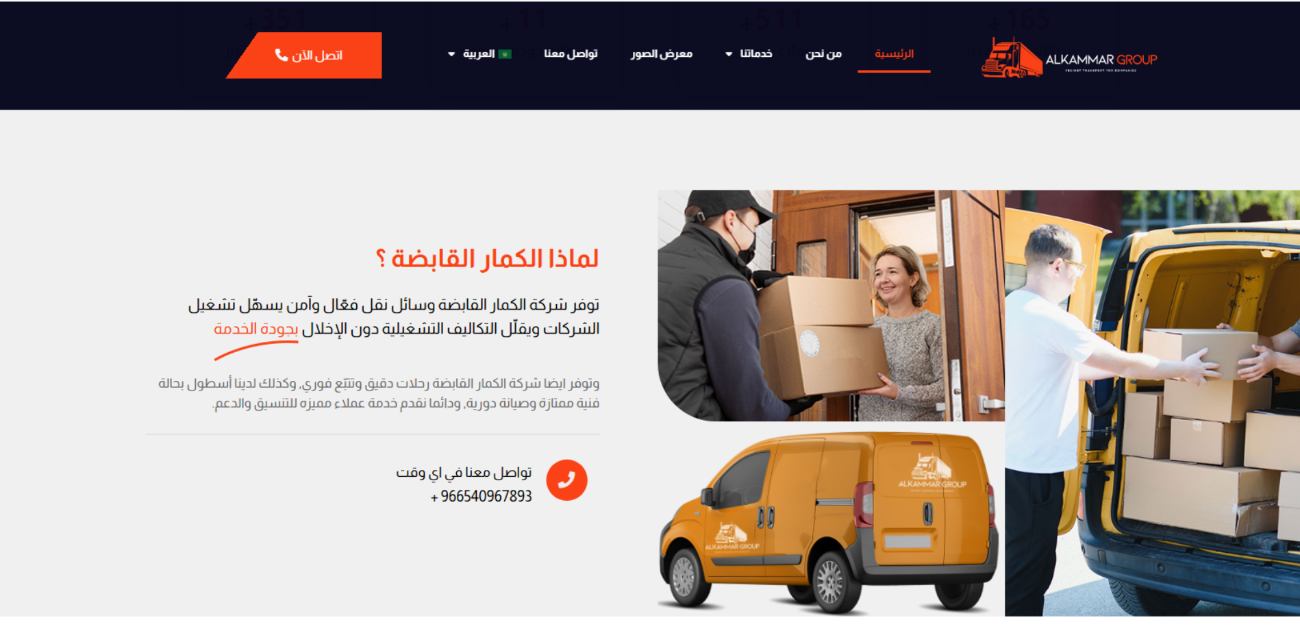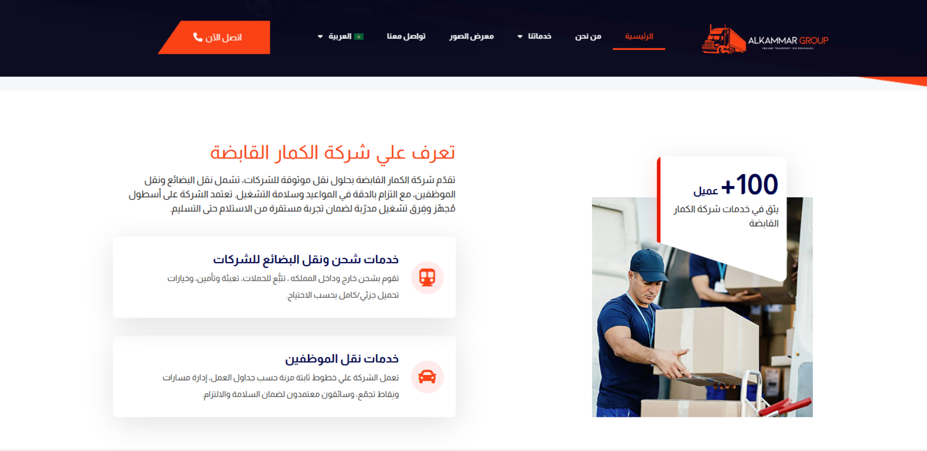 موقع شركة الكمار القابضة يعرض حلول نقل مخصصة لقطاع الأعمال تشمل الشحن والنقل وإدارة شحنات الشركات من الاستلام حتى التسليم عبر أسطول مجهز وفِرق تشغيل مدرّبة، مع مميزات مثل تتبّع الشحنات، التعبئة والتأمين، وخيارات تحميل جزئي/كامل. كما يقدم خدمة نقل الموظفين (Corporate Employee Transfer) ويبرز الالتزام بالمواعيد وسلامة التشغيل.
