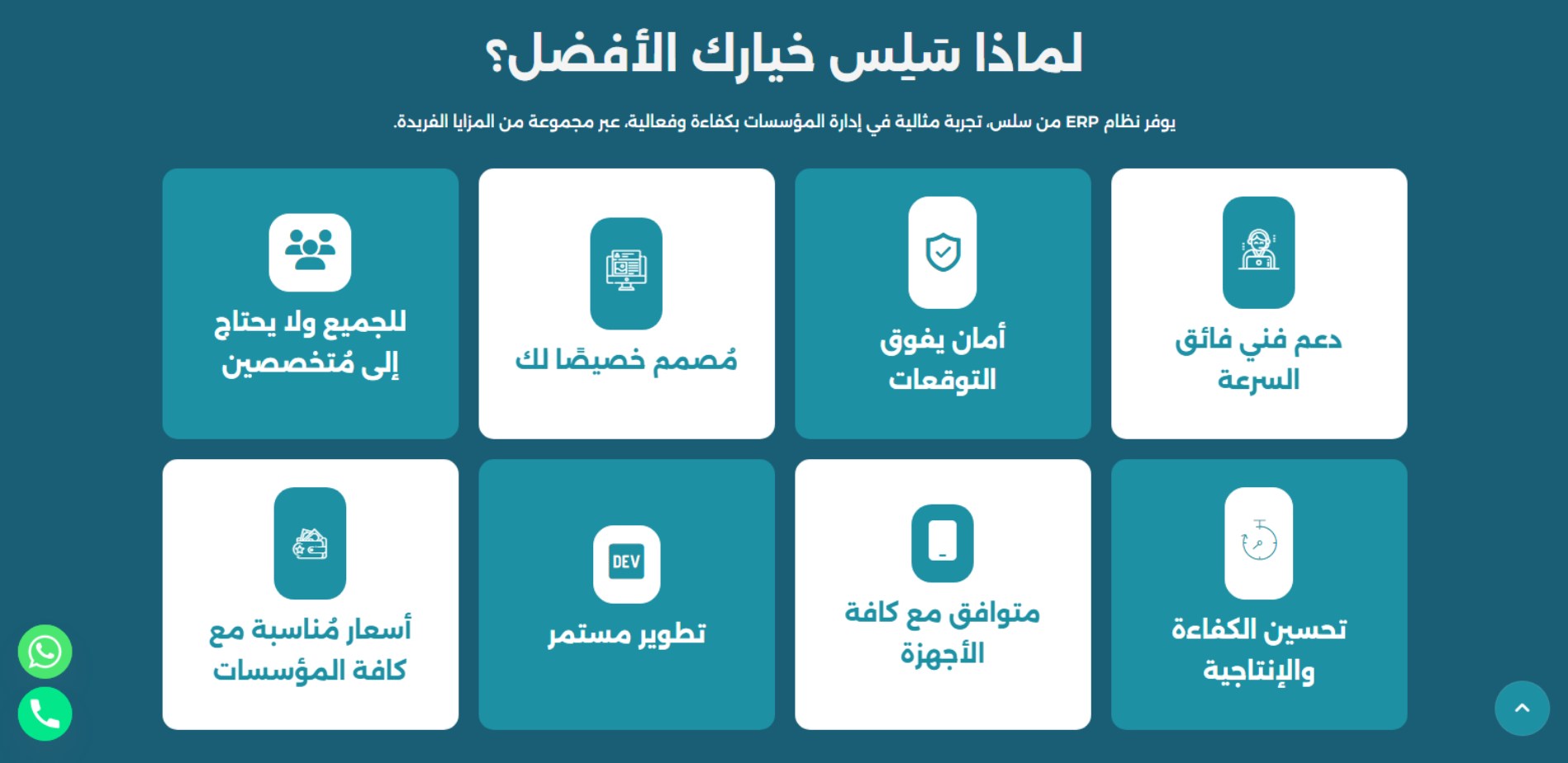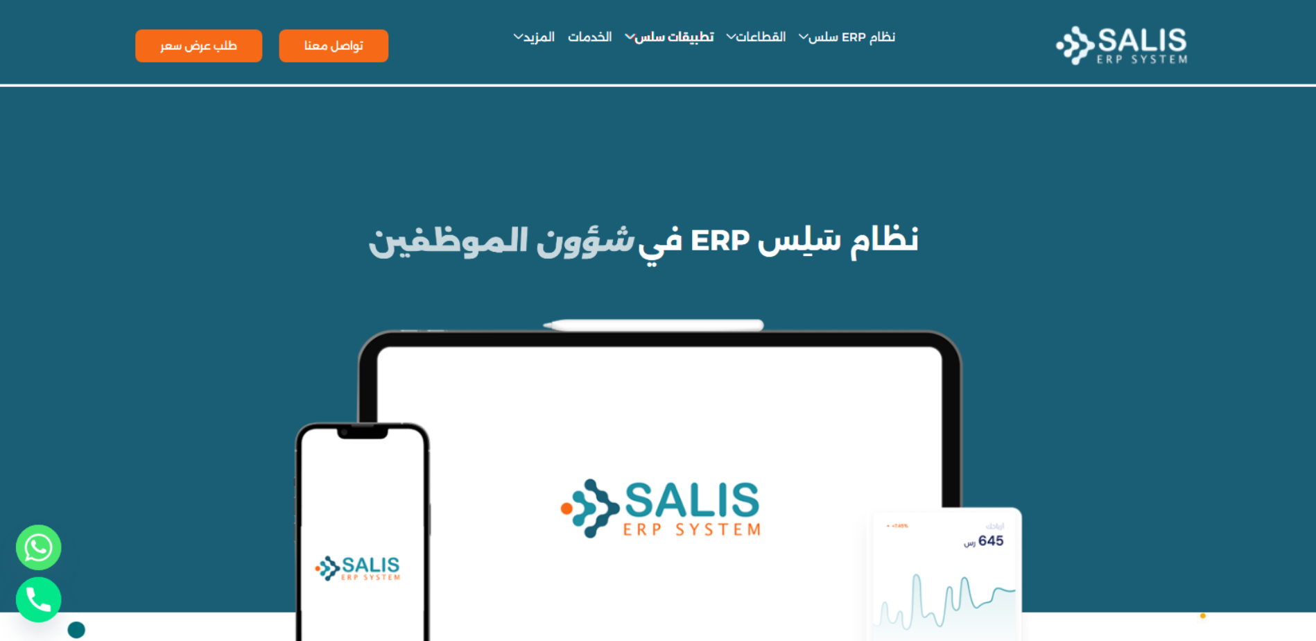 موقع Salis ERP هو موقع تعريفي لنظام ERP سعودي قابل للتخصيص يغطي وحدات متعددة مثل المحاسبة، الموارد البشرية، نقاط البيع POS، إدارة المصانع والإنتاج، إدارة المشتريات/المخزون وغيرها، ويقدّم الفوترة الإلكترونية حسب متطلبات هيئة الزكاة والضريبة والجمارك. كما يعرّف بالشركة المطوّرة (تأسست 2016 في جدة) وخدماتها التقنية مثل التصميم والبرمجة، حلول التجارة الإلكترونية، والربط عبر API.