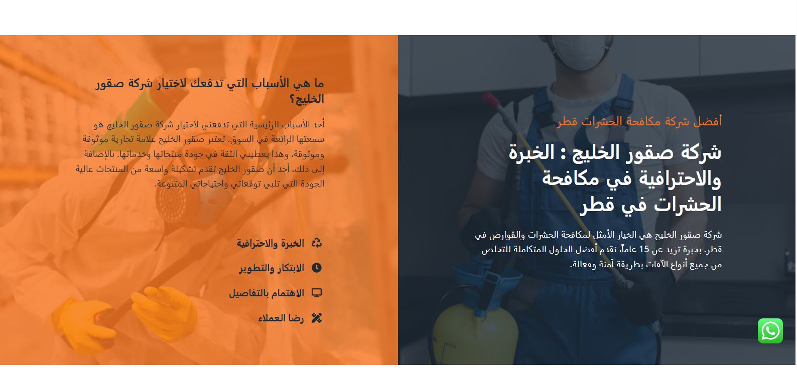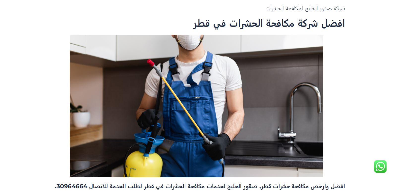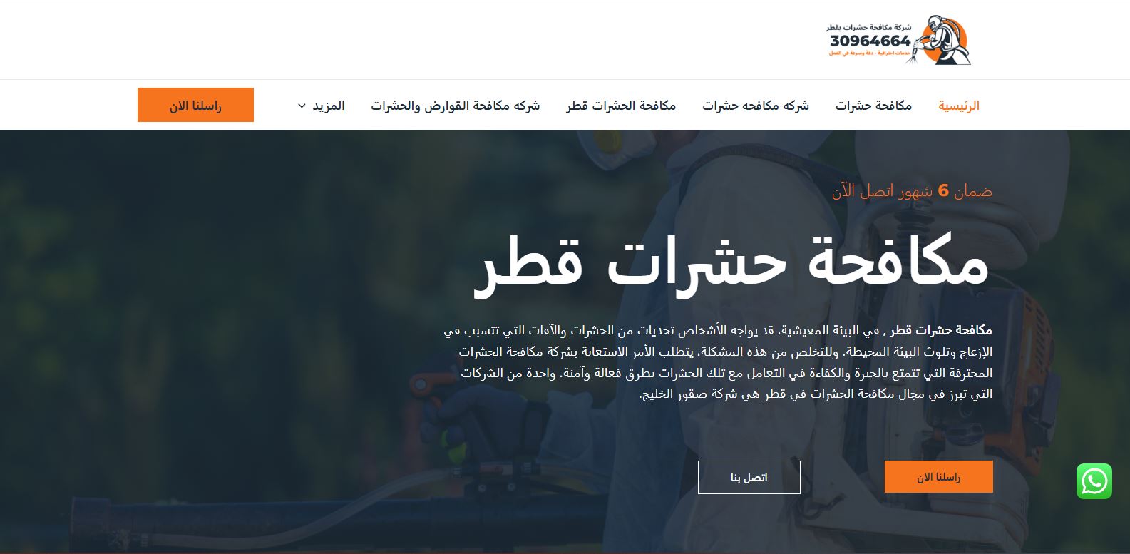 موقع QatarPestControlExperts يعرض خدمات مكافحة الحشرات والقوارض داخل قطر، ويقدّم محتوى خدماتي/مقالات متعددة حول أنواع الآفات وطرق المكافحة، مع إبراز تغطية مناطق مختلفة داخل قطر وشهادات/آراء عملاء. يوفّر أزرار تواصل واضحة (Call Now وWhatsApp) ويدعم طلب الخدمة بسرعة، ويظهر في الفوتر أنه “تصميم وبرمجة شركة بيو فري للحلول المتكاملة”.
