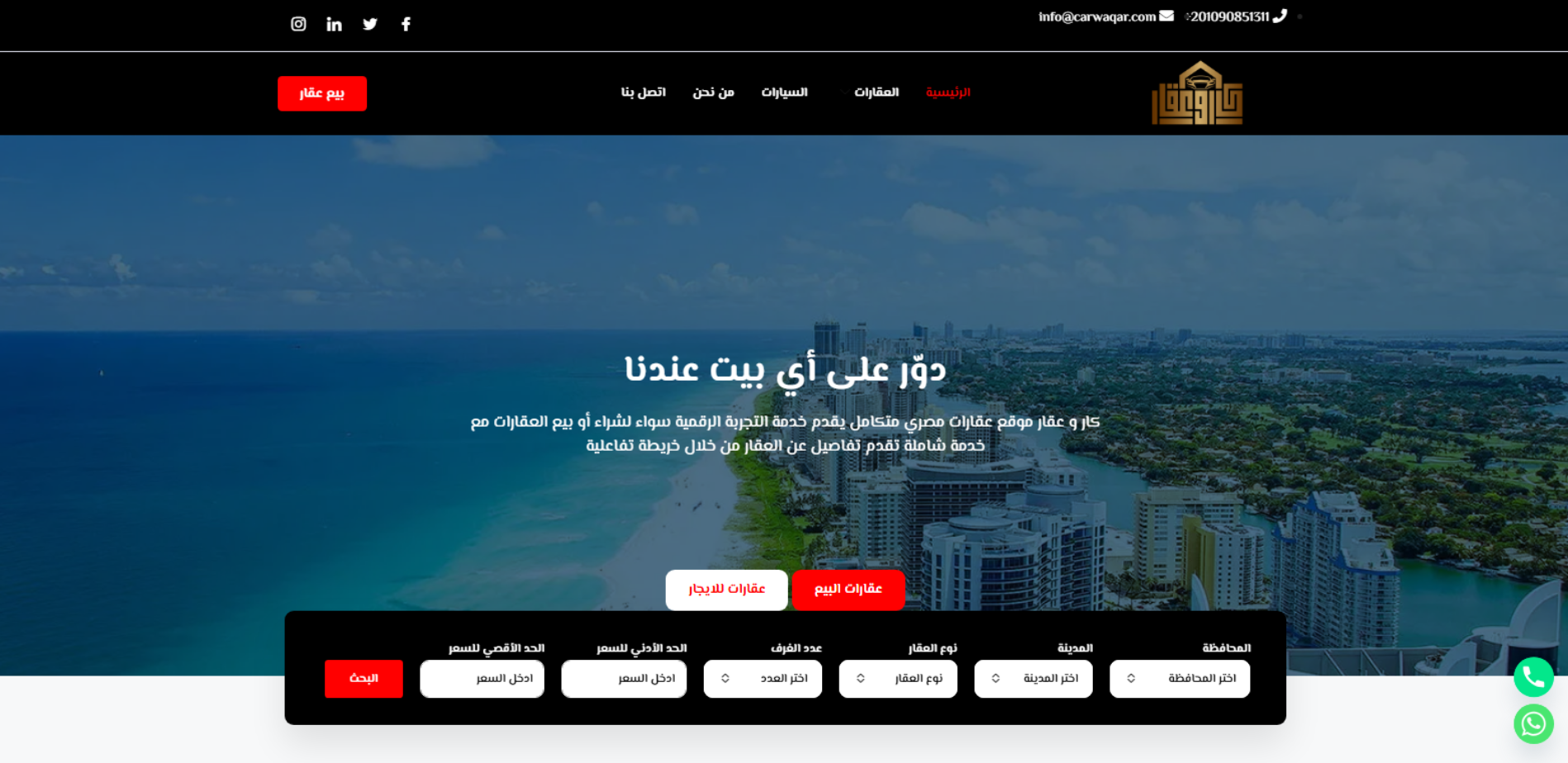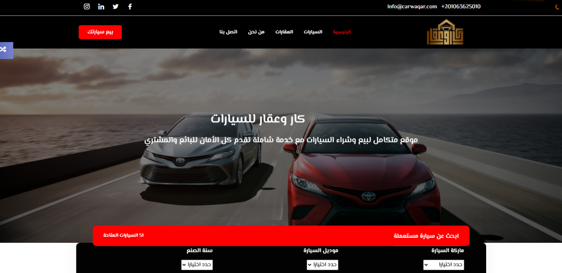 منصة “كار وعقار” تعمل كدليل/سوق محلي للسيارات (ومرتبطة بقسم العقارات أيضًا)، وتوضح أنها تستهدف مناطق مثل المنيا وبني سويف، وتقدم تجربة بحث متقدمة (ماركة/موديل/حالة/سعر) مع نشر إعلانات للبيع، وبيانات تواصل رسمية.