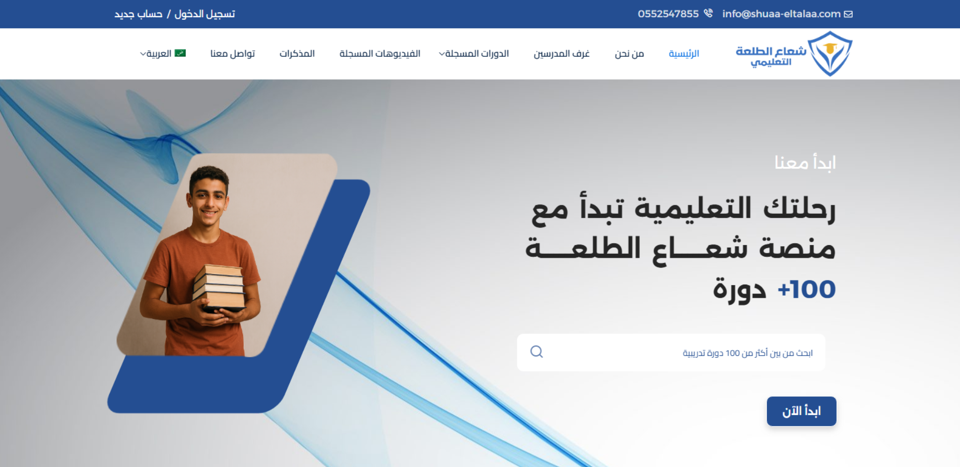 موقع شعاع الطلعة التعليمي منصة دورات أونلاين تركّز على اختبار القدرات (قدرات كمي/لفظي تأسيس وتدريب) وتعرض الدورات المسجلة وغرف المدرسين، مع مميزات مثل الحصص المباشرة، التسجيلات، مذكرات PDF، شات فوري واشتراكات مرنة.
