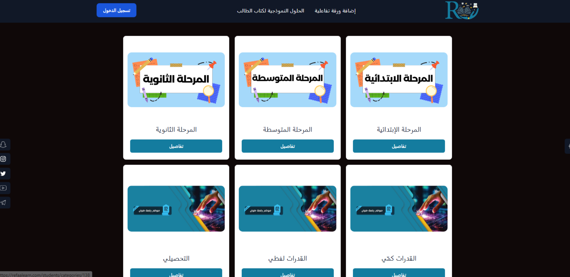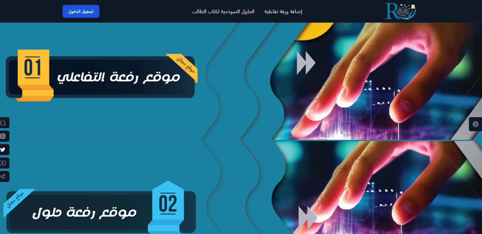 موقع رفعة التفاعلي يوفّر نظامًا لإنشاء وإدارة أوراق عمل واختبارات تفاعلية عبر حسابات (تسجيل/دخول)، ويتيح للطلاب حل الاختبار من خلال صفحة إجابات مخصصة، بالإضافة إلى قسم الحلول النموذجية لكتاب الطالب المعروض حسب المراحل الدراسية.