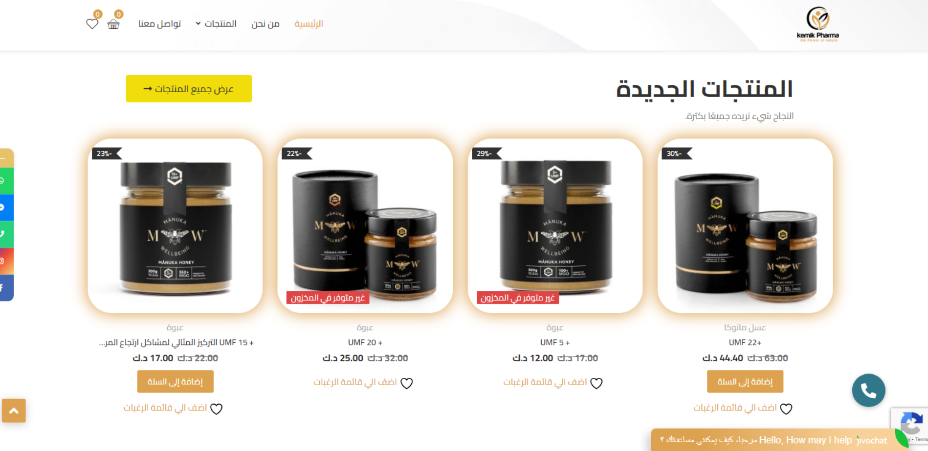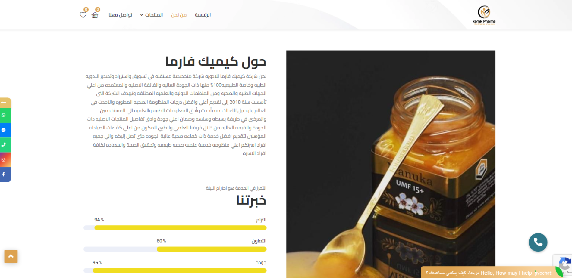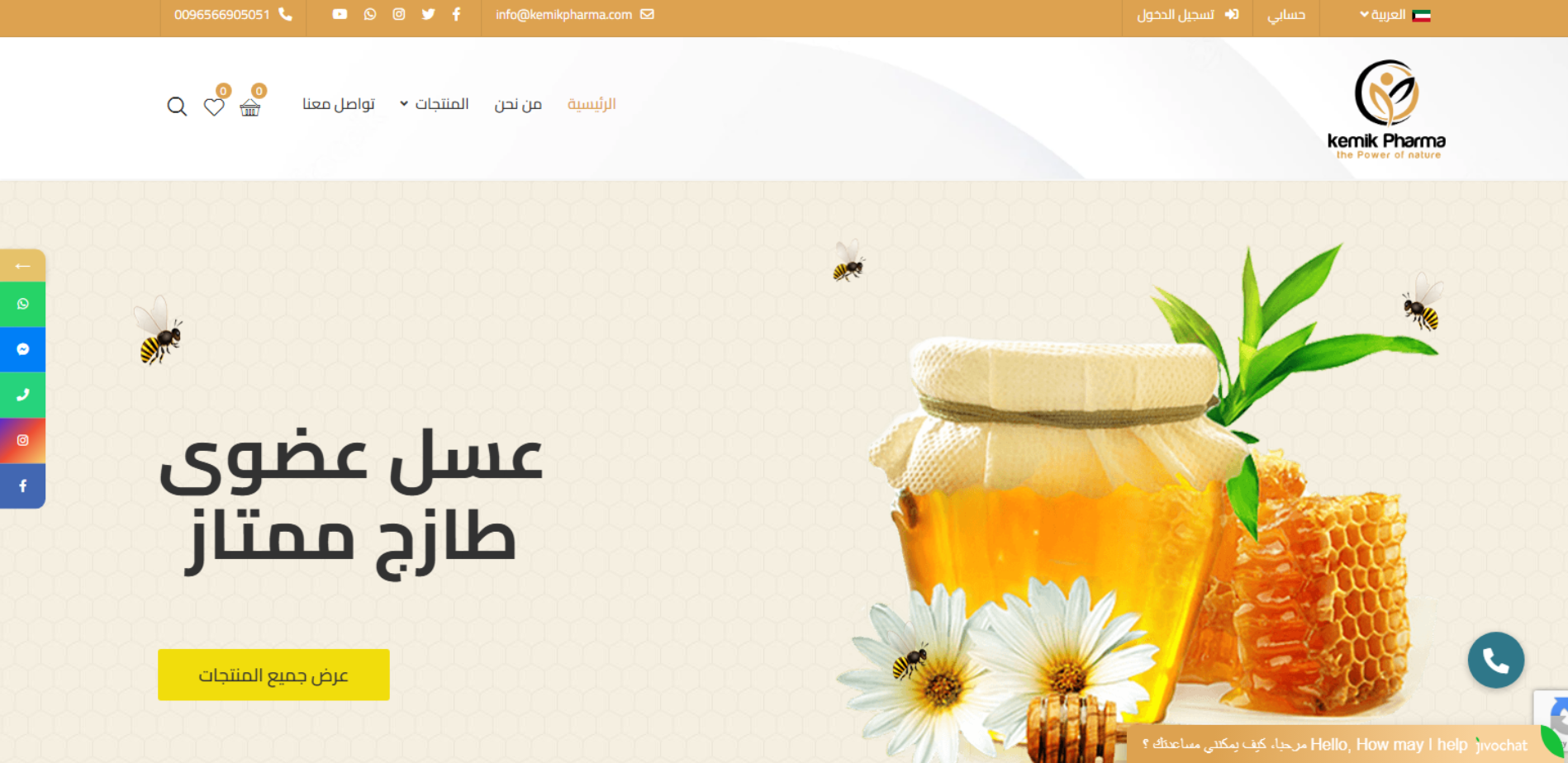Kemik Pharma موقع تجارة إلكترونية يركز على منتجات العسل الطبيعي والعضوي ويبرز ارتباطه بمنشأ نيوزيلندا وخبرة طويلة لمربي النحل، ويتيح تصفح المنتجات وطلبها عبر قسم Shop مع نظام حسابات (Register/Login) وصفحات تواصل رسمية.