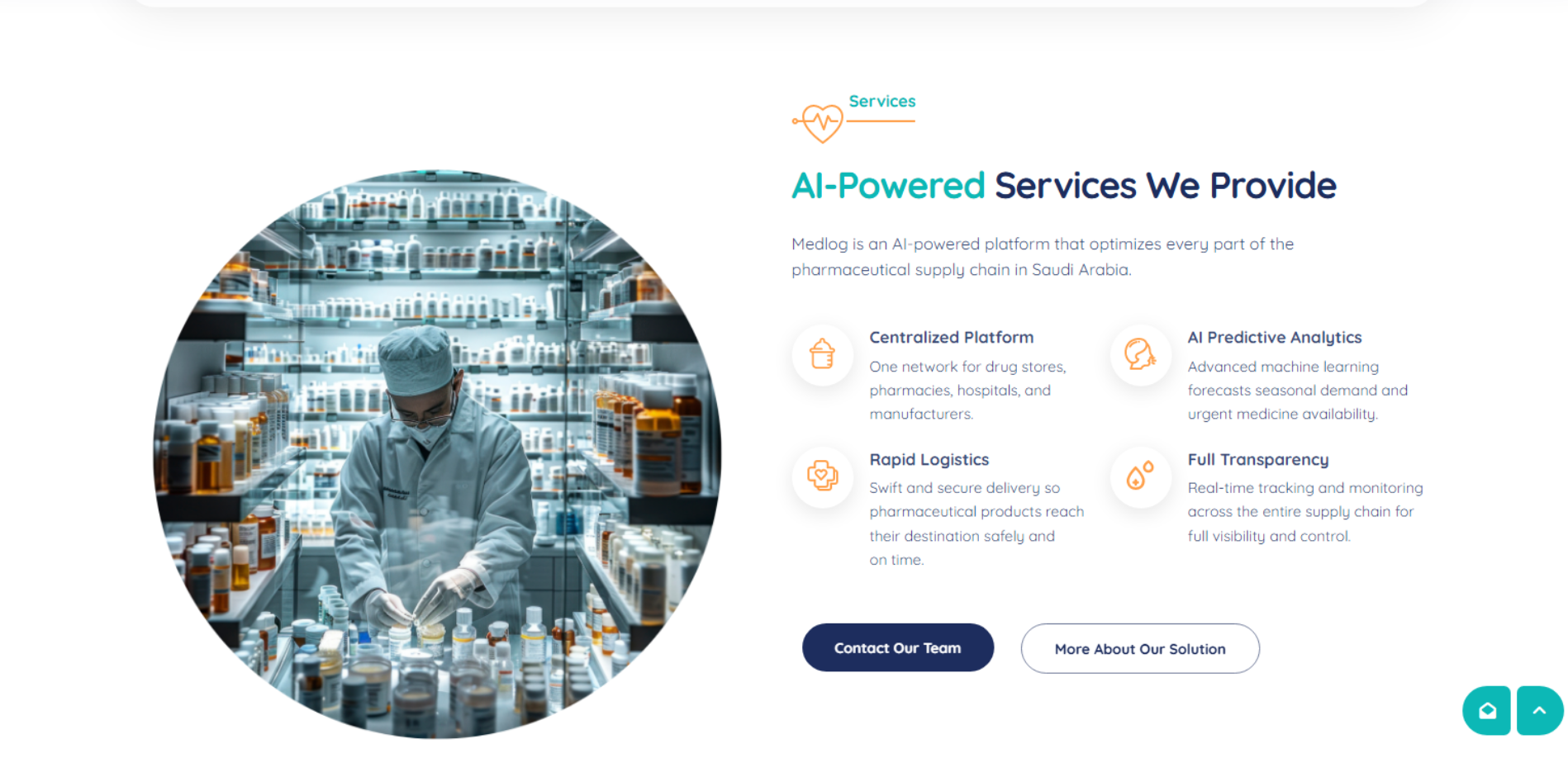 موقع Medlog يعرّف بمنصة لوجستيات دوائية في السعودية تربط أطراف سلسلة الإمداد (صيدليات التجزئة، المستشفيات والعيادات، مخازن/موزعين، ومصنّعين) على شبكة واحدة لتسهيل إدارة الطلبات والشحنات وتحسين توفر الأدوية. يوضح الموقع مميزات مثل منصة مركزية، توقع الطلب (Predictive Analytics)، لوجستيات سريعة، وشفافية عبر تتبع لحظي، مع صفحات FAQ ومدونة ونموذج تواصل.