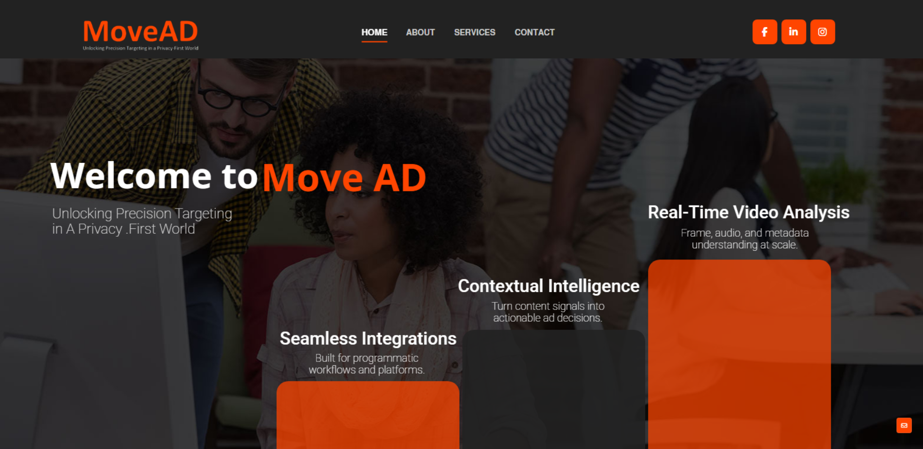 Move AD عبارة عن محرك ذكاء سياقي للفيديو وCTV يقوم بتحليل المحتوى قبل عرض الإعلان، ويخرج تصنيفات سياقية وإشارات Sentiment وSuitability Scoring لاستخدامها في الاستهداف أو الاستبعاد أو التقارير. المنصة تركّز على احتياجات المنطقة (اللغة العربية والملاءمة الثقافية) ودعم متطلبات الامتثال في أسواق مثل الإمارات والسعودية، مع إمكانية التكامل داخل منظومات DSP/SSP/Exchanges وتقديم حزم ترخيص/نشر مخصص وخدمات استشارية.