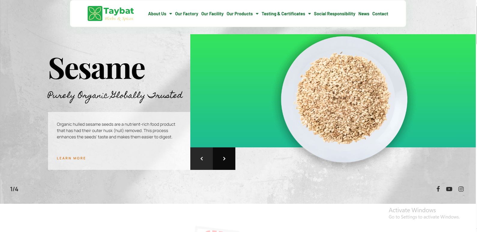 موقع THS Herbs Group واجهة تعريفية لشركة تعمل في إنتاج وتصدير منتجات عضوية تشمل Seeds / Herbs / Spices، وتبرز اعتمادها على التحكم في سلسلة الإمداد من خلال شبكة مزارع داخل مصر ومساحات زراعية كبيرة، مع تقديم صفحات تفصيلية عن المصنع وخطوات التجهيز مثل الفرز والتنقية وكشف المعادن والـColor Sorting بهدف رفع الجودة. كما يعرض الموقع أقسامًا واضحة مثل About Us وOur Factory وOur Facility وOur Products (أعشاب/بذور) بالإضافة إلى Testing & Certificates وOur Markets وSocial Responsibility وNews وContact، مع إبراز التوريد لأسواق دولية متعددة.